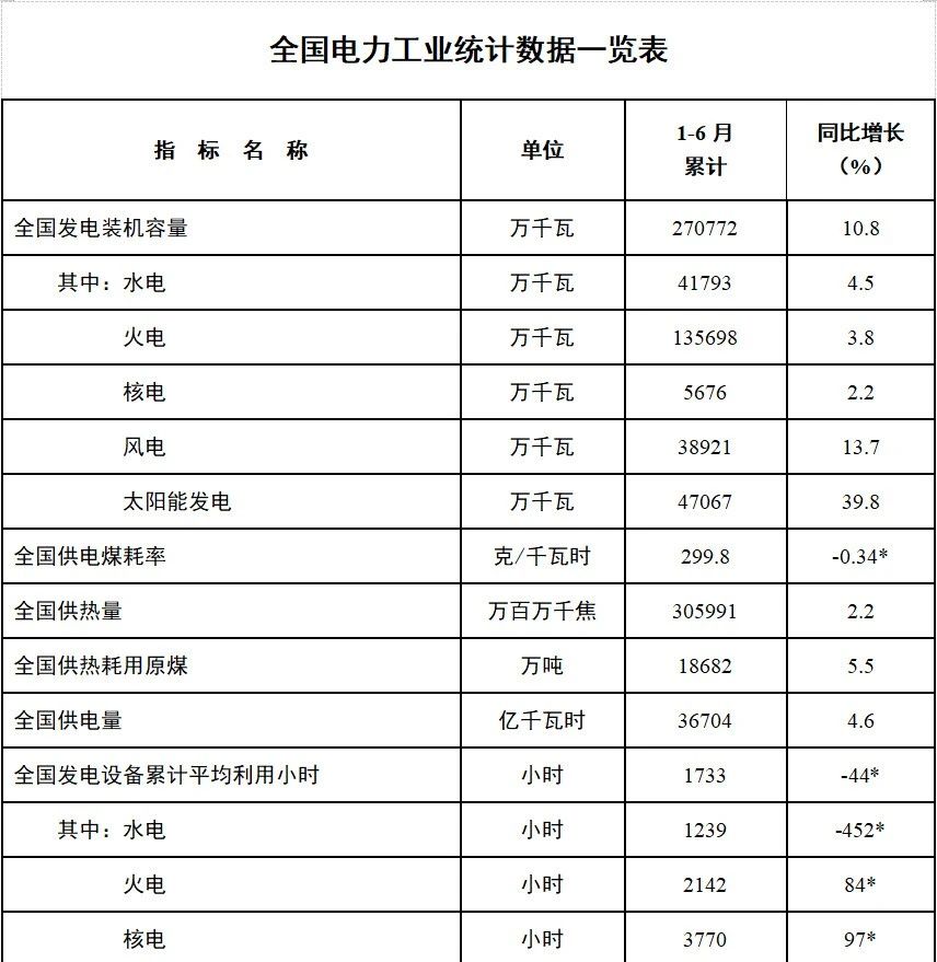 7月19日,國家能源局發(fā)布1-6月份全國電力工業(yè)統(tǒng)計數據。