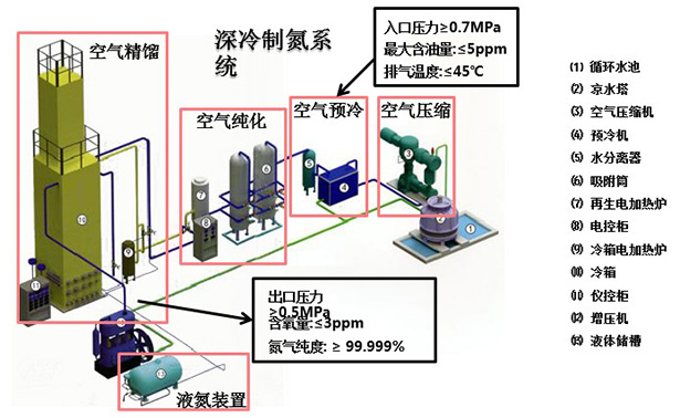 輪胎氮氣硫化工藝是目前輪胎硫化最先進的生產工藝,相比傳統的PSA制氮、液氮 氣化,其主要優點是節能,制氮純度高,純度可達到99.999%。